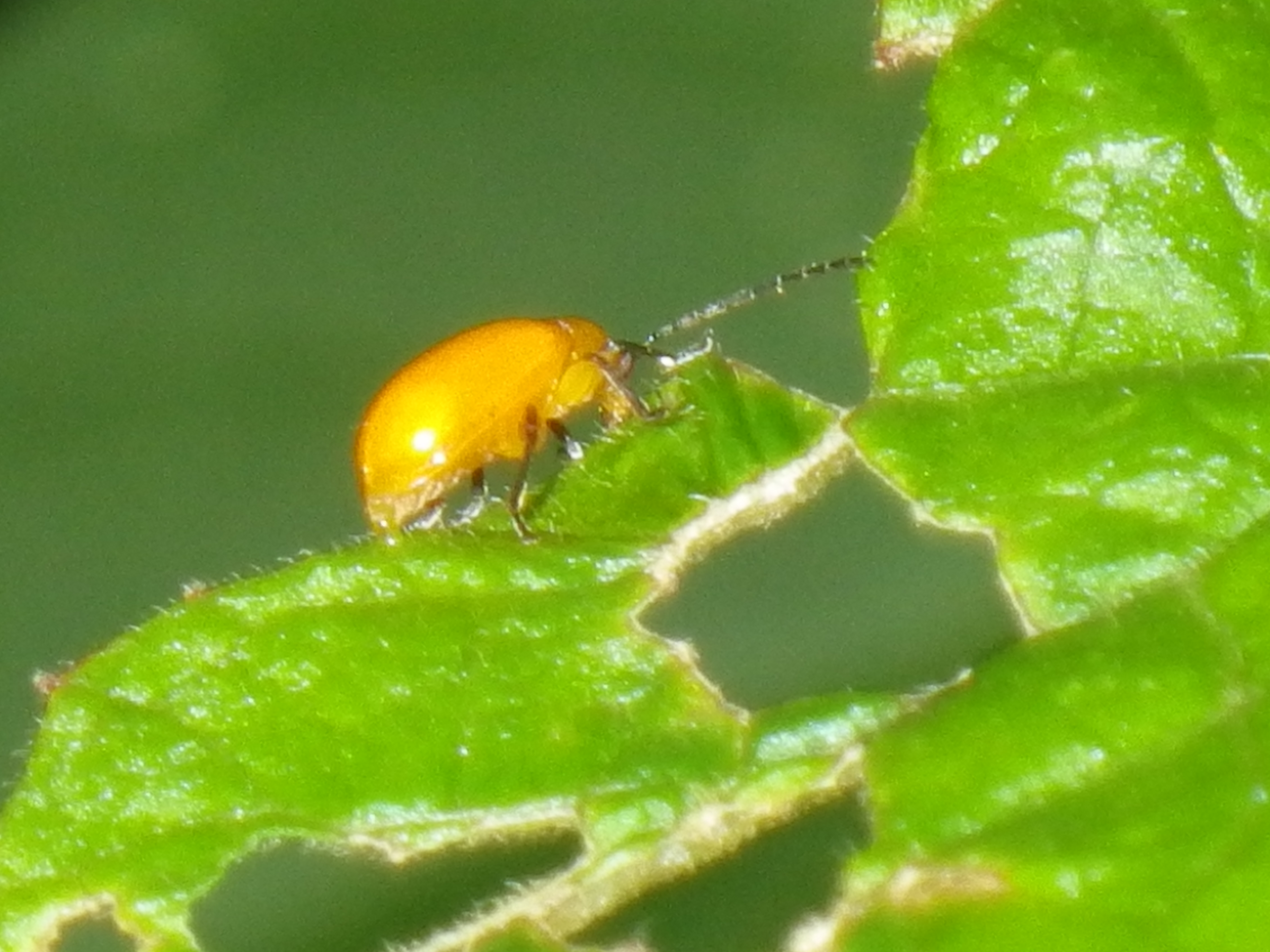 A Black-tibia flea beetle Parchicola "black-tibia" feeding on P. vitifolia. This seems to be the most common species of Parchicola feeding on P. vitifolia, but this needs to be verified with additional positive identifications. |